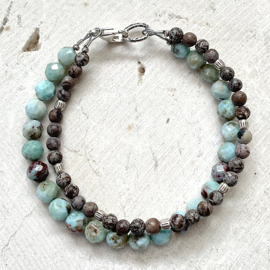 WELL-BEING Intention Bracelet | Larimar & Brown Snowflake Obsidian | Meaningful Jewelry